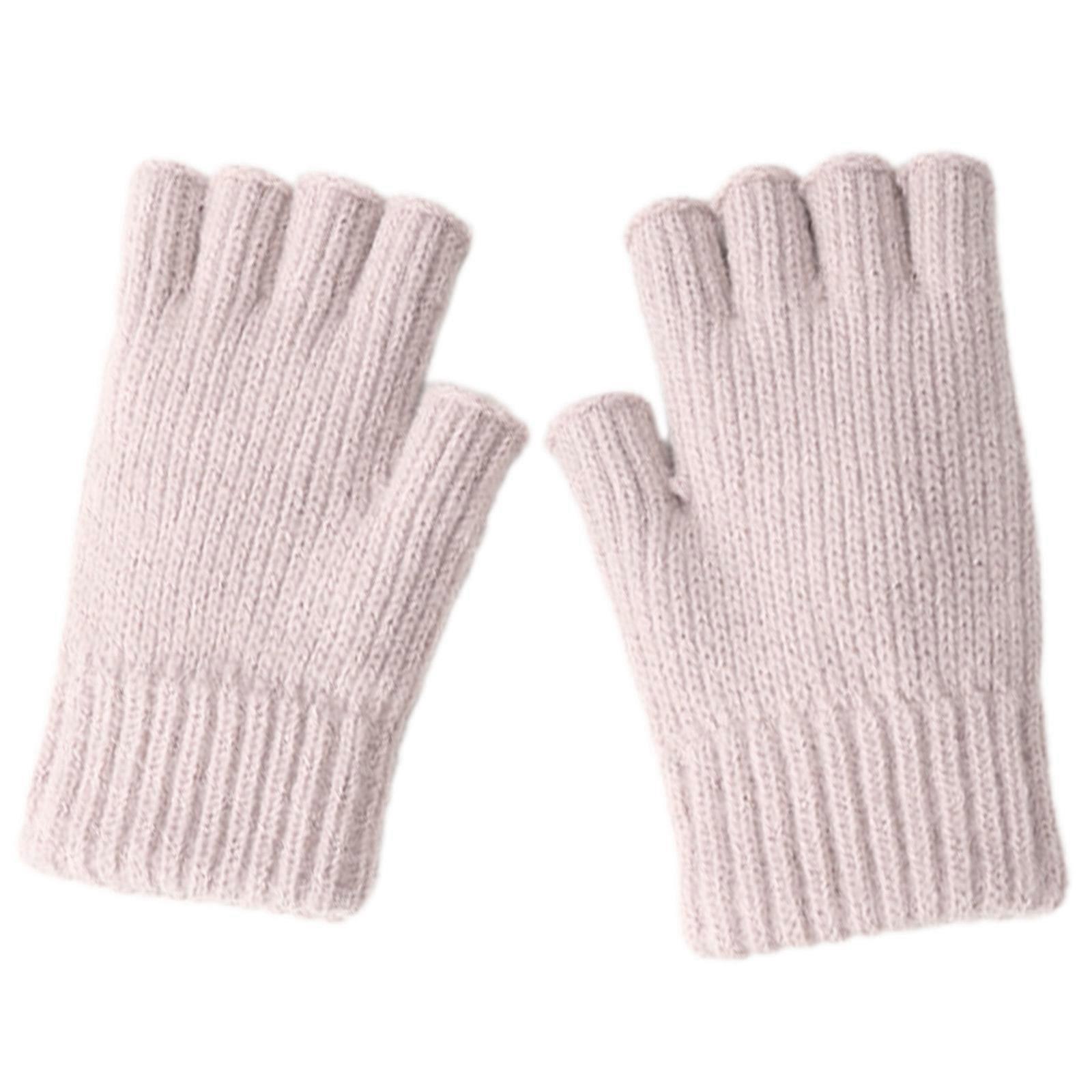 Solid Color Half Finger Gloves Thick Hand Warmer Knitted Screentouch Gloves for Writing Reading Office School Daily Use peach