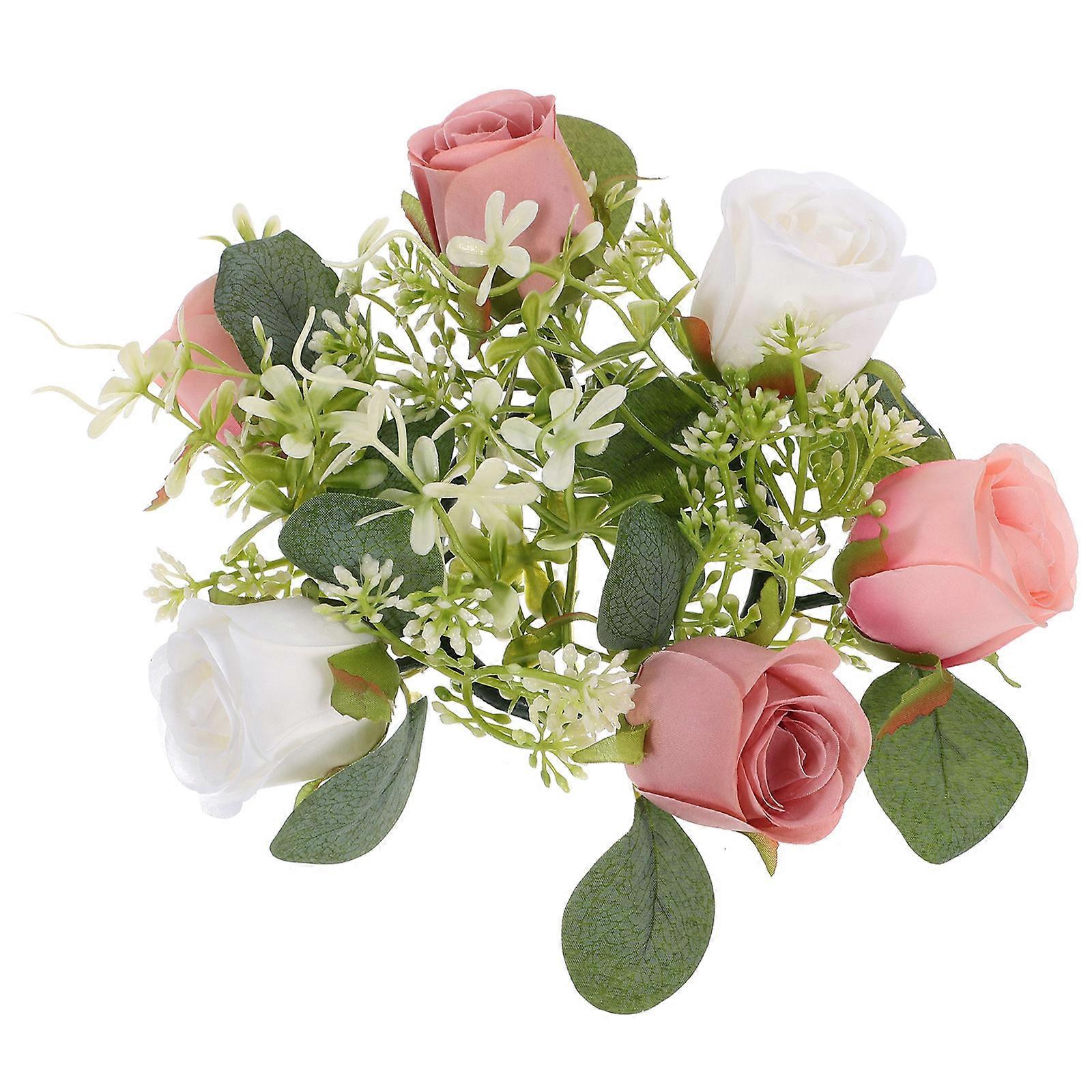 Rose Flower Candle Wreath for Decoration 4Pcs Artificial Candle Rings