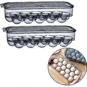 Stackable Bpa-free Transparent Egg Container, Refrigerator Egg Storage Box, With Lid And Handle-32 Eggs- 2 Packs