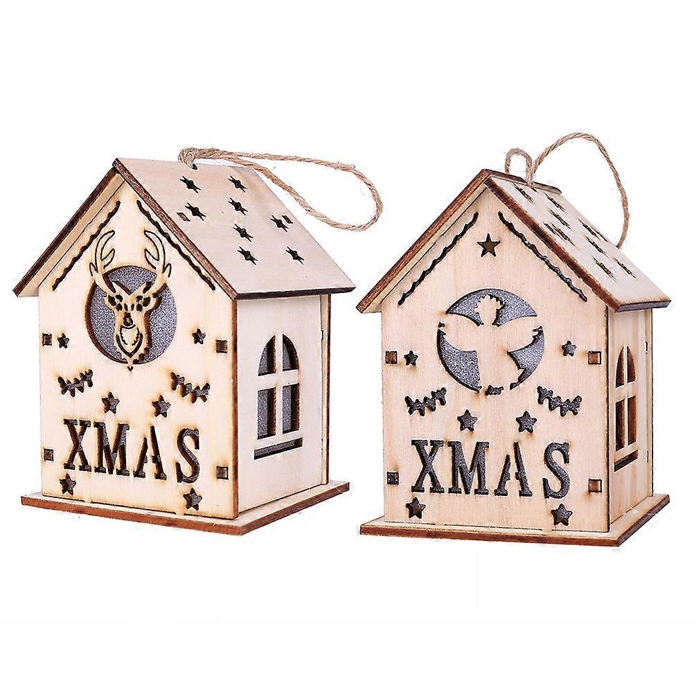 House Decoration Items 2 Pcs Glowing Wooden Cabin Pendants Charming Indoor Outdoor Christmas Decor Odorless Material