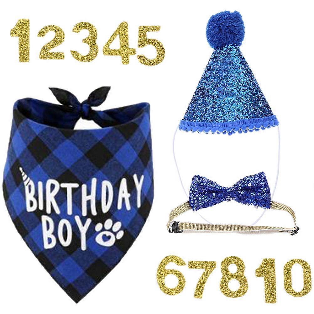 Cat Birthday Party Outfit Dog Bib and Hat for Birthday Party 3Sets