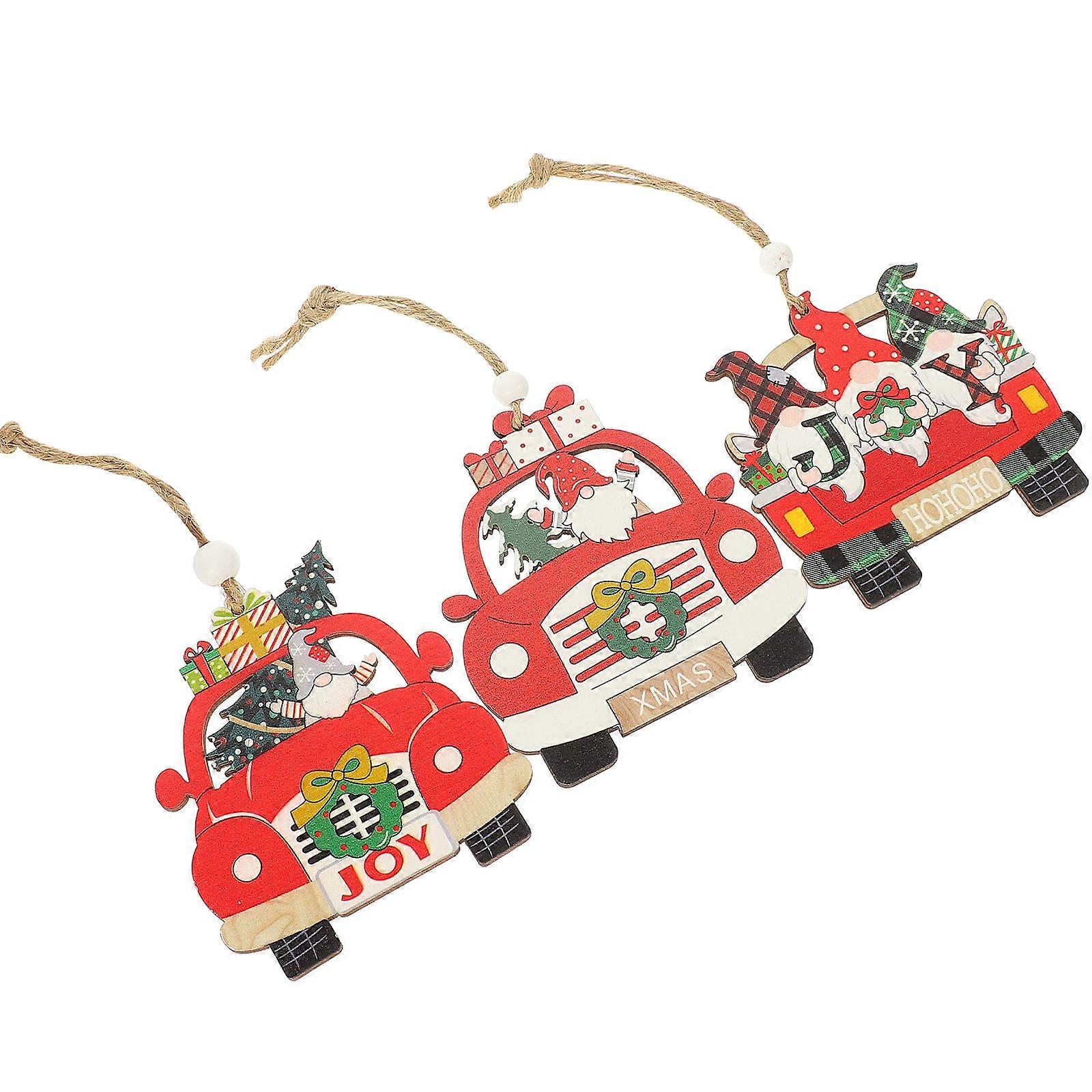 Car Ornaments Wood Christmas Tree Decoration Living Room Decorative Item 10x8.8cm 3Pcs