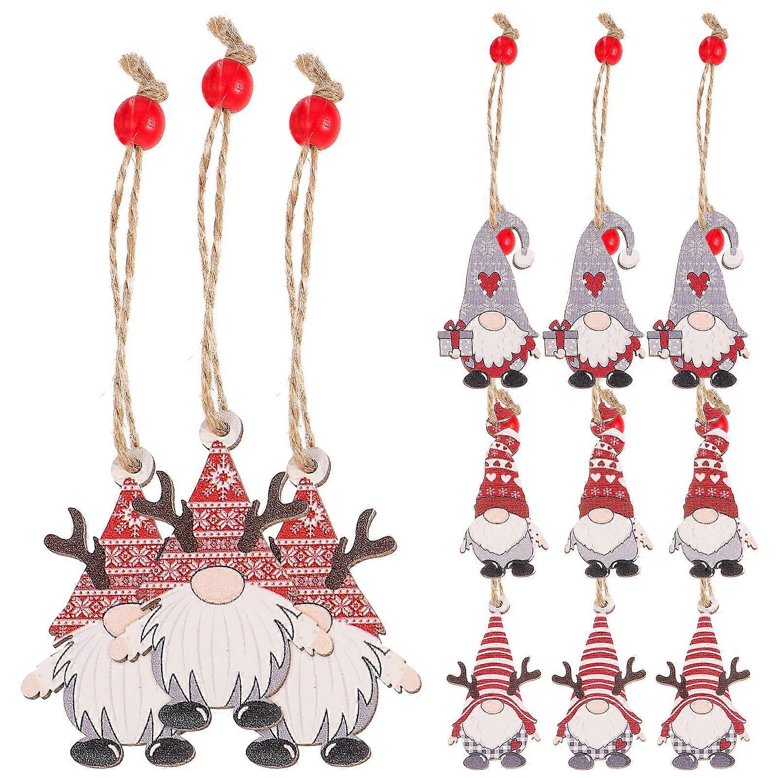 Christmas Tree Ornaments Wood Gnome Hanging Decorations 60Pcs