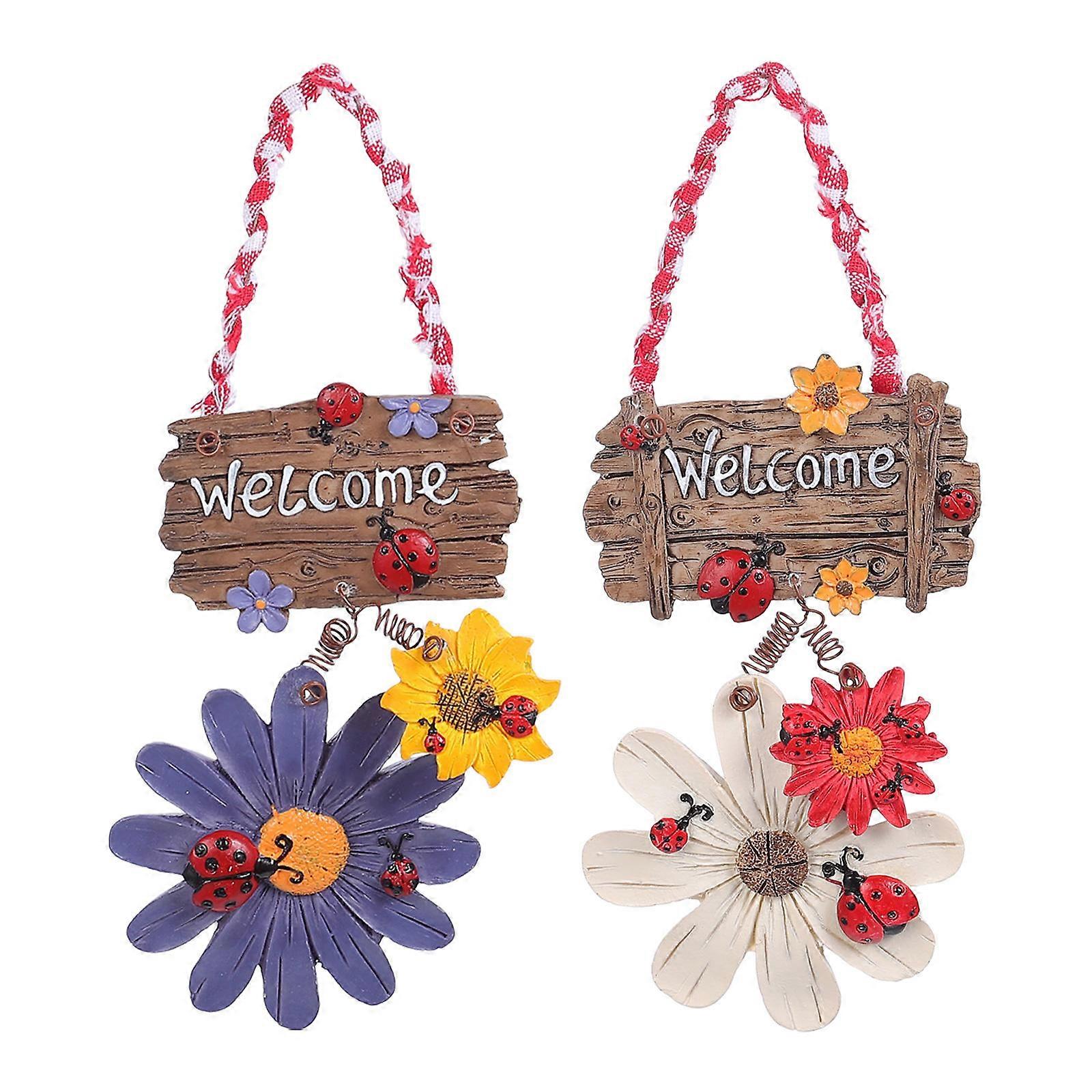 Assorted Color Welcome Ornament Sunflower Ladybug Door Hanging Pendant 6Pcs