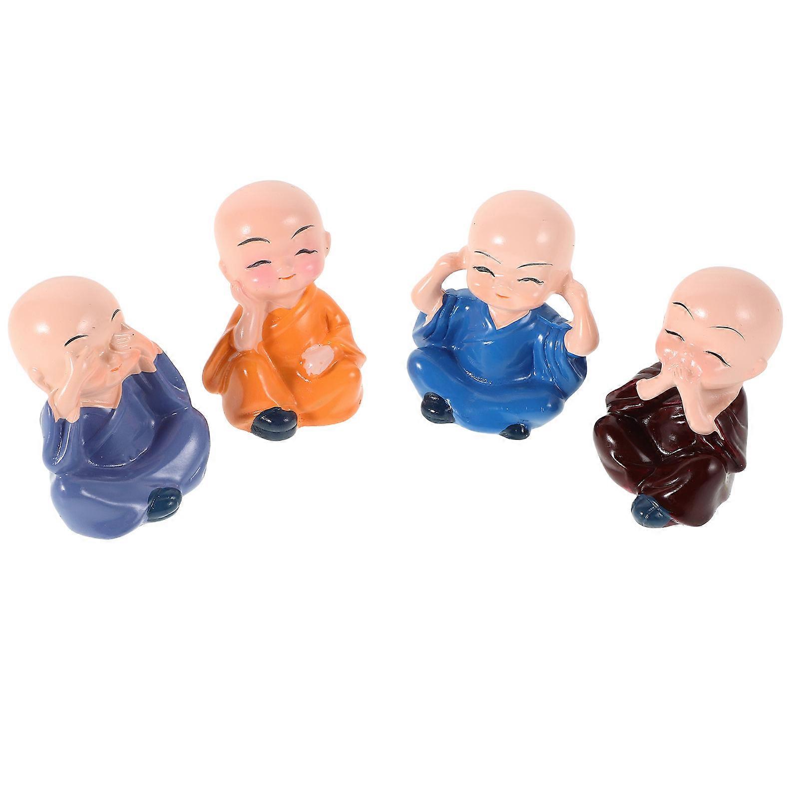 Dashboard Ornament Resin Monk Doll Car Interior Accessories Decor Assorted Color 5.50X3.50X3.00CM Adornment 4Set
