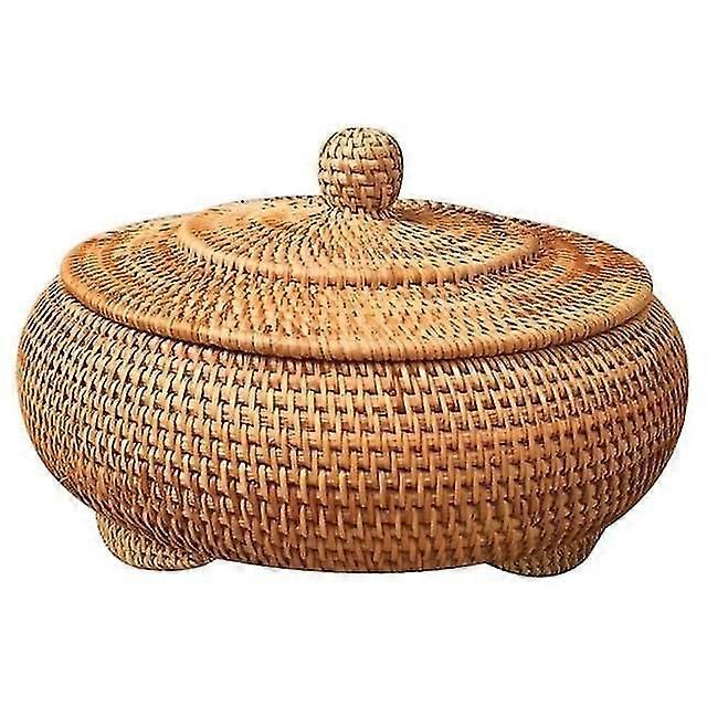 Round Rattan Boxes With Lid Hand Woven Multi Purpose Wicker Tray Picnic Food Bread Storage Baskets