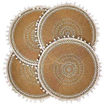 Στρογγυλά Σουπλά Σετ 4,Boho Υφαντά Επιτραπέζια Χαλάκια με Φούντα Pompom για Τραπεζαρία Τραπέζι Κουζίνας Δεκ