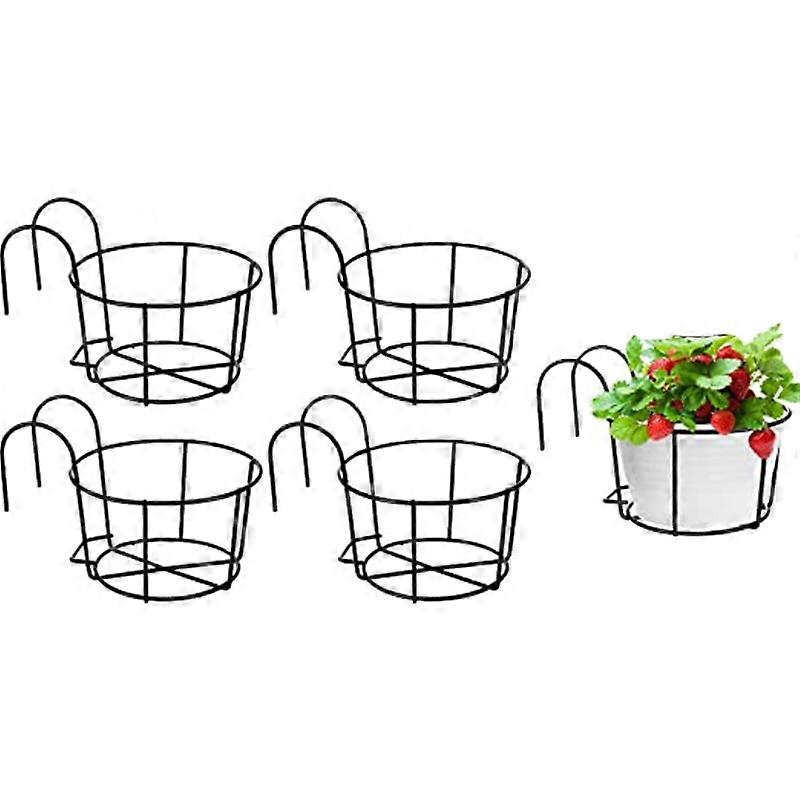 Round Metal Hanging Railing Planters 4PCS Decorative Flower Pot Holders