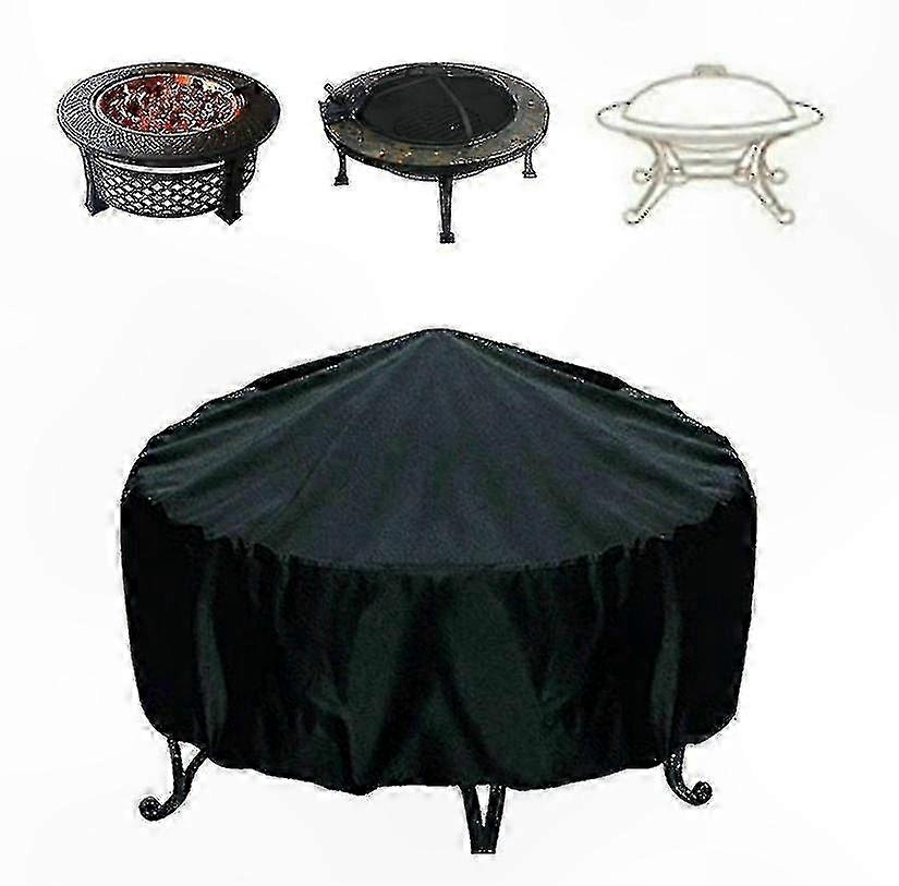 Round Fire Pit Cover, 210D Ox Cloth, Waterproof & Dustproof Grill Protector with Sunshade Feature