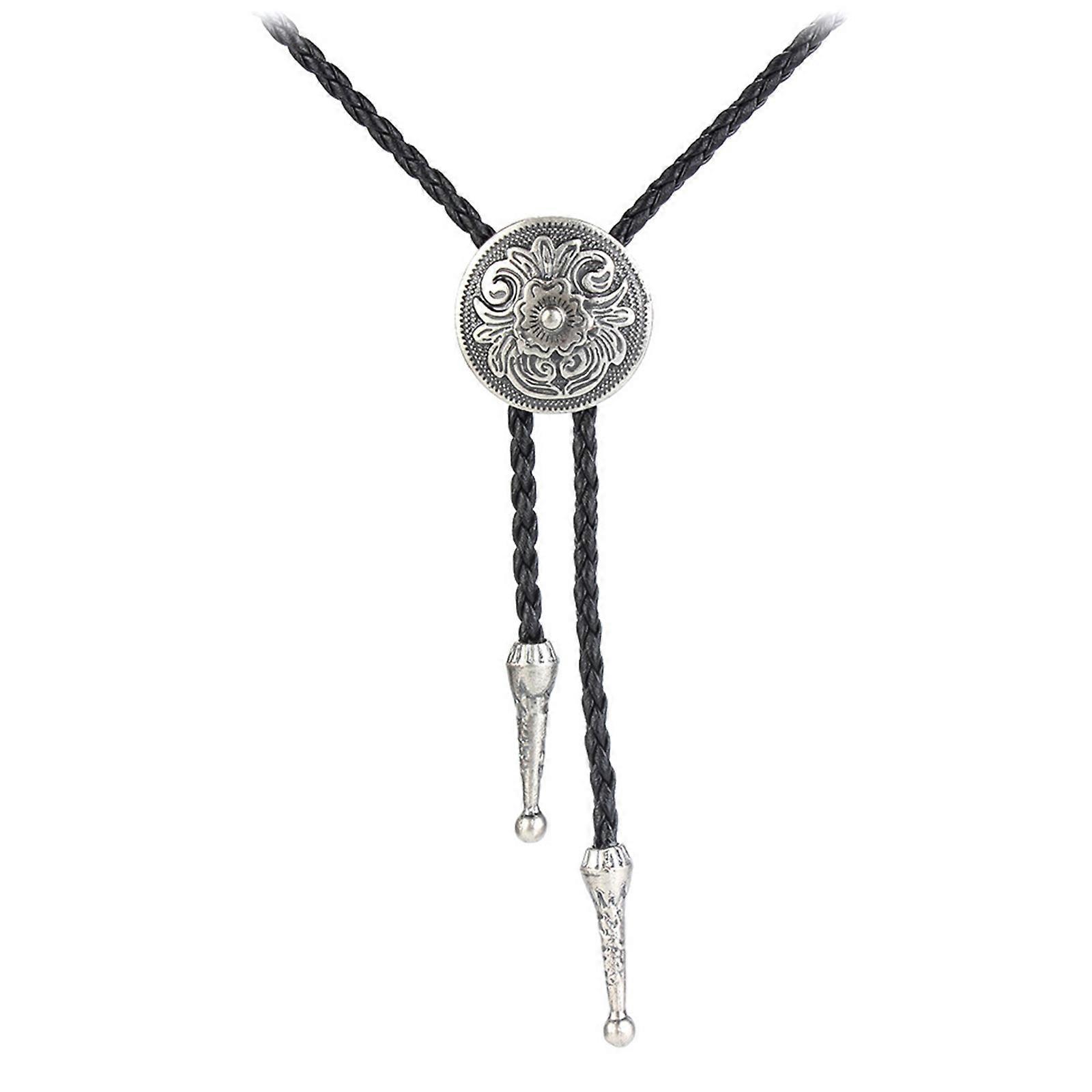 Round Bolo Tie Necklace Western Bolo Tie Vintage Bolo Tie Cowboy Tie Cowboy Leather Necktie Sweater Chain Leather Bolo ancient silver