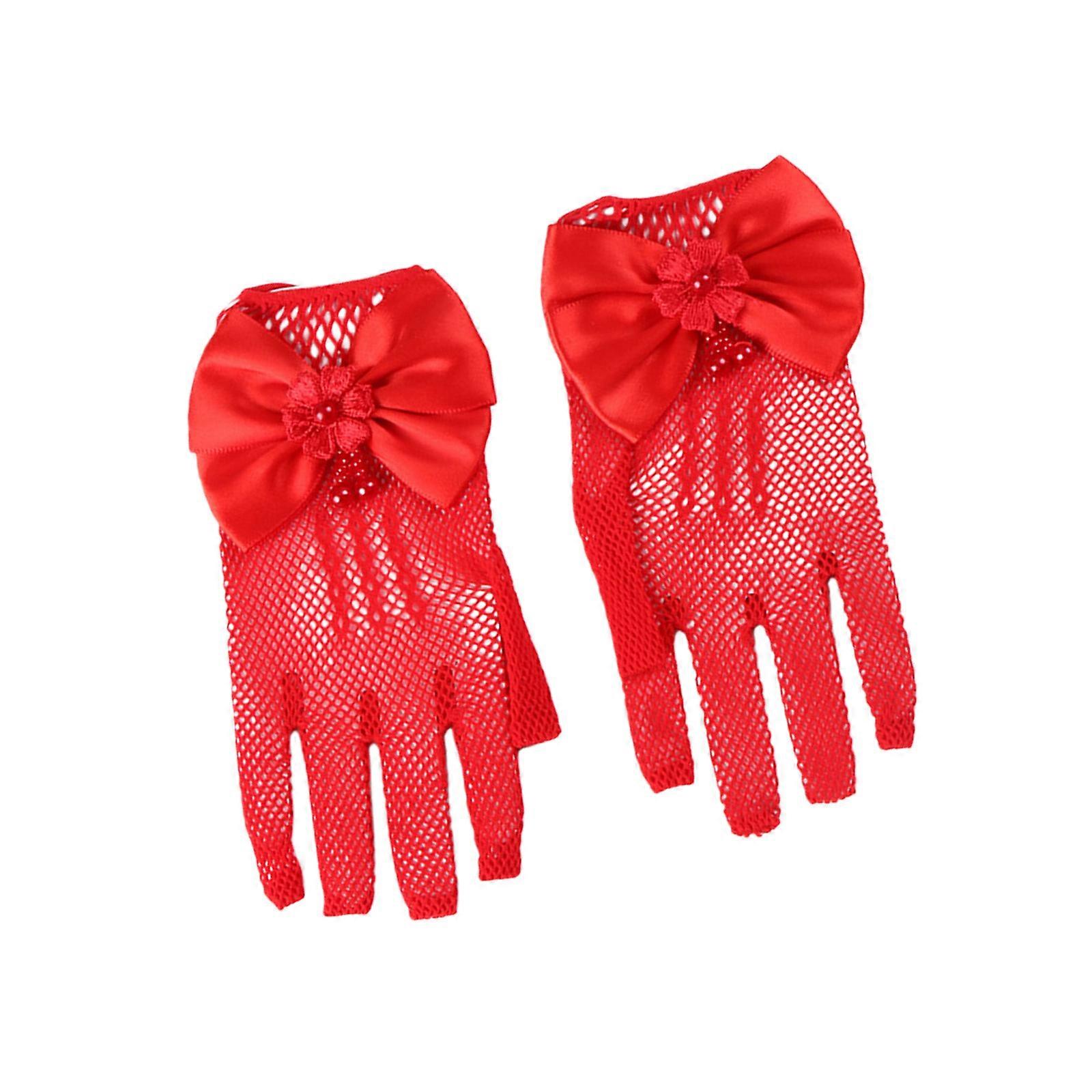 Stylish Gloves Lovely Fishnet Mittens for Girls Gowns Dress Feature Lace Imitation Pearls Accent Formal Occassion Red
