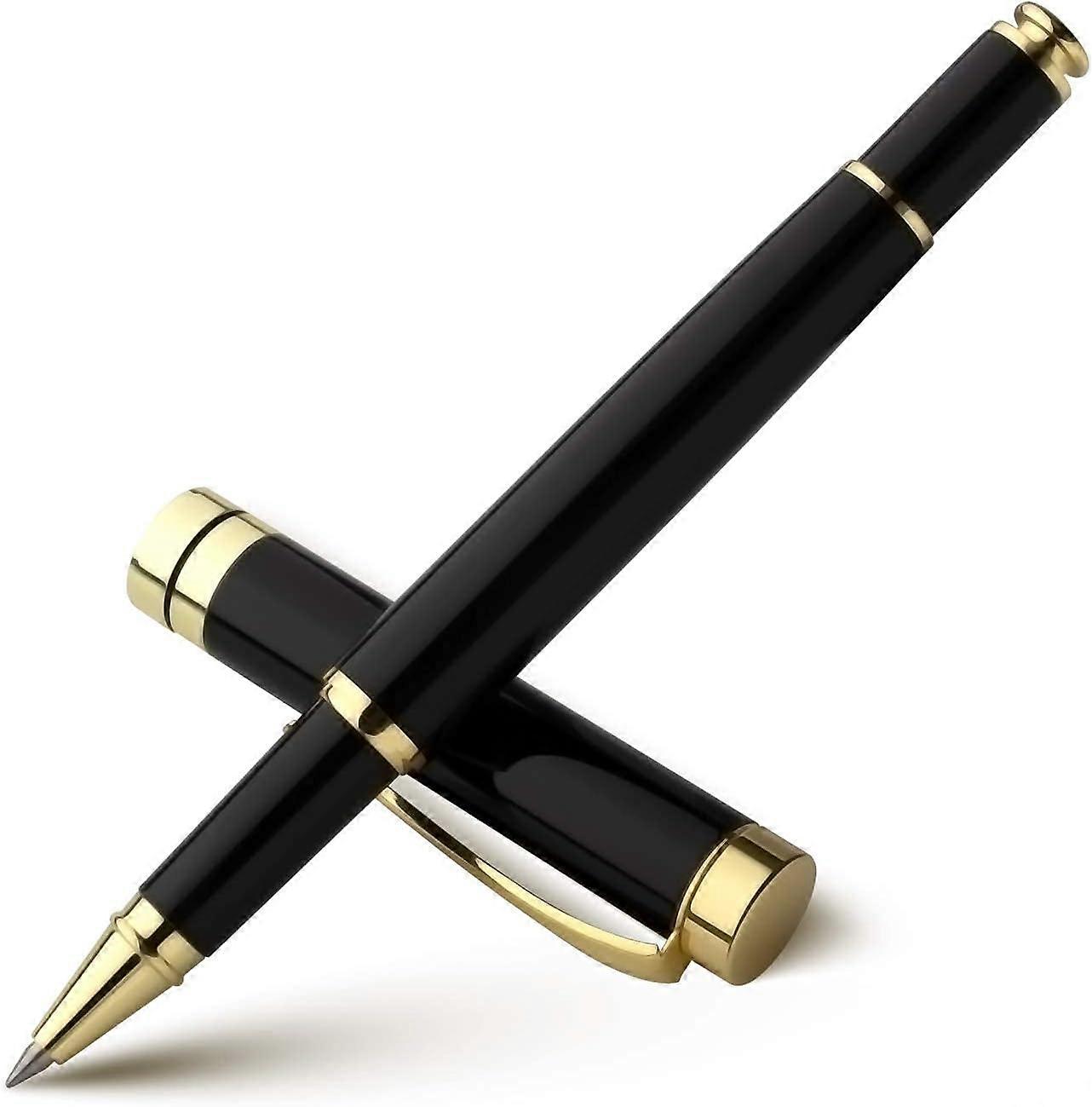 Ballpoint pen, stunning black chromed metal pen with gold trim