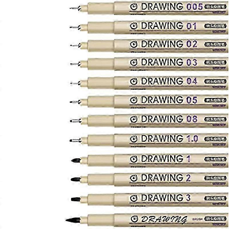 Painting Art Pens: 12 Black Fine Line Waterproof Ink Set Markers Drawing Sketch Anime Watercolor