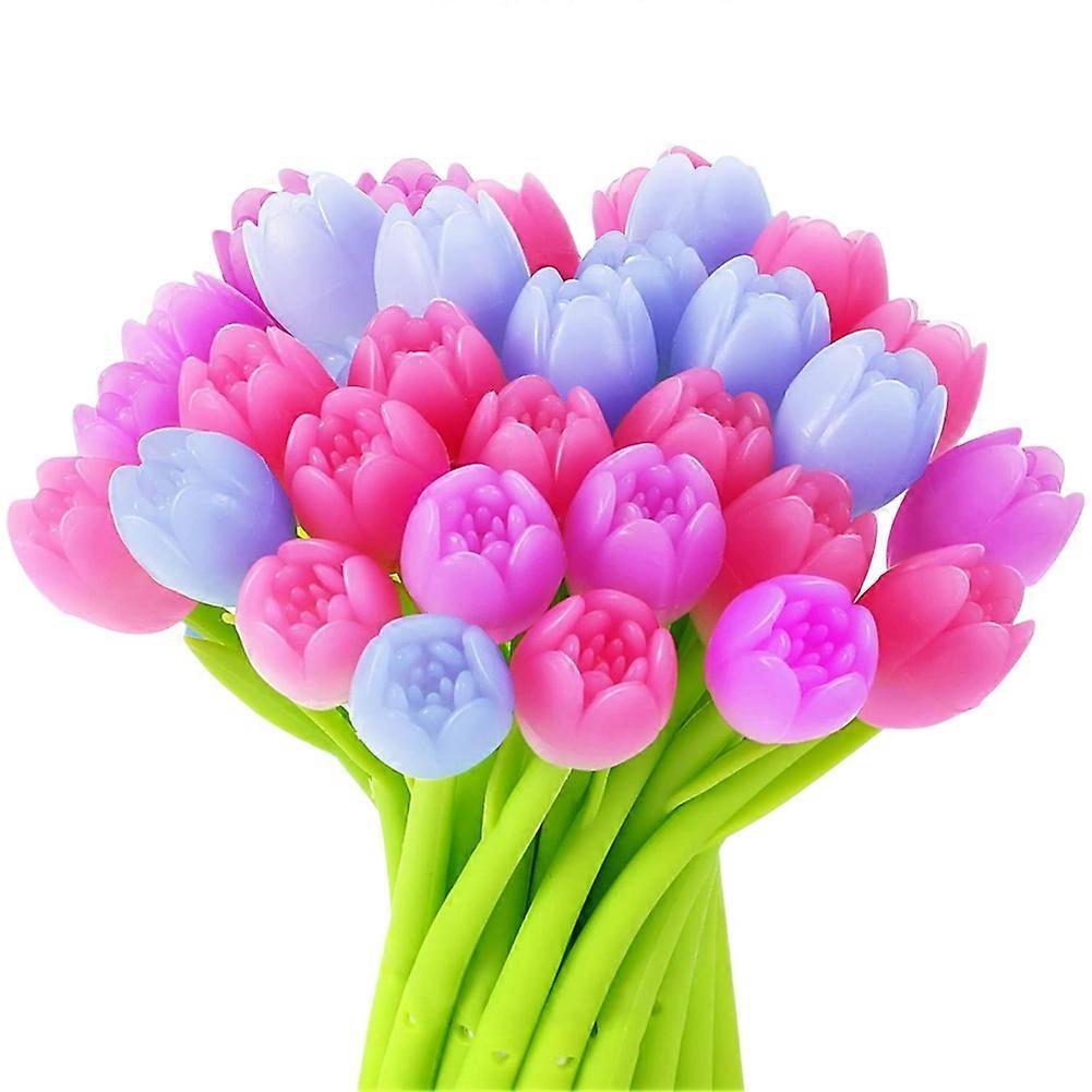 Color Changing Tulip Flower Pens, 50 Pcs Tulip Gel Ink Pen Bulk for Birthday Party Favors Gift School Classroom