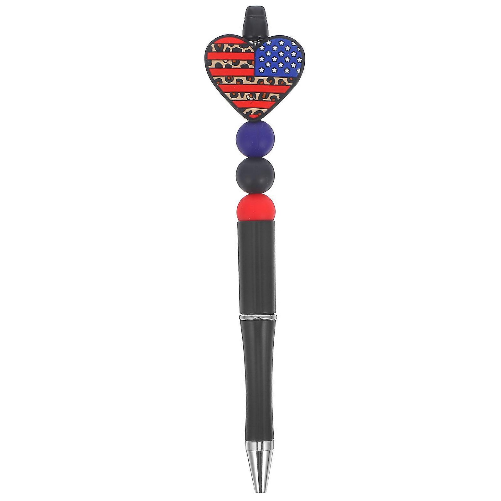 Heart Shaped Gel Ink Pen with American Flag Design for Smooth Writing – Reusable Ergonomic Cartoon Silicone Pen for School, Office, and Student Use