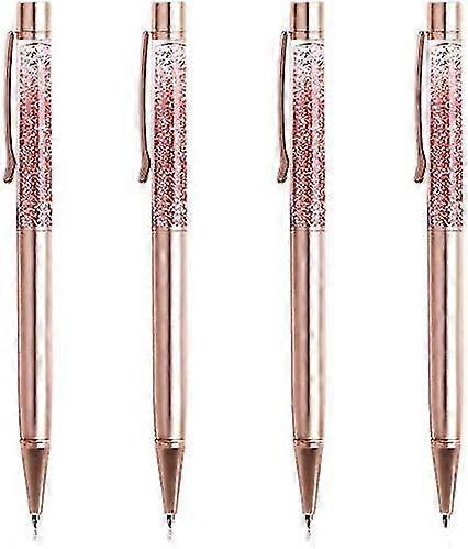 Ballpoint Pens, 4 Pcs Rose Gold Metal Pen Refills Bling Dynamic Liquid Sand Pen Black Ink For Office Supplies