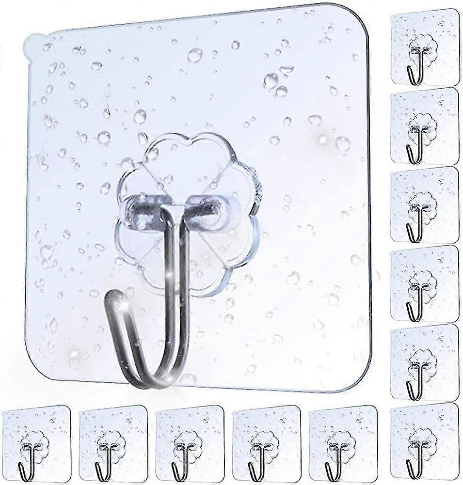 Easy to install Please use the adhesive hooks after 24 hours of installation. Just remove the transparent protective film and press it on the wall, easy and convenient. Without drilling or holes, does not damage the wall. .Wide application The universal adhesive hooks are multifunctional in bedroom kitchen, bath and household for tea towels, rags, bath towels, bathrobe, clothes. .Strong strengthadhesive hooks provide enough extra strength and durability to hold your items.is very stable and corrosion resistant. . Waterproof The adhesive hooks all are waterproof, oil proof, moisture proof and heat resistance. .Size60mm (L) * 60mm (W), 12pcs. Our hook cannot hang valuables. .