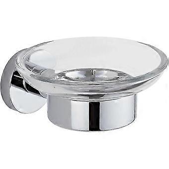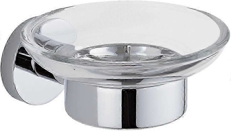 Contemporary Round Wall-Mounted Bathroom Glass Soap Dish with Chrome Holder Suitable for Various Styles