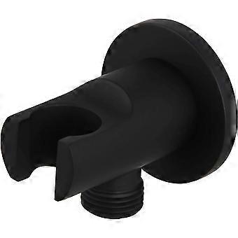 Συμπαγές ορειχάλκινο στήριγμα τοίχου για ντους χεριών με γωνιακή υποδοχή παροχής νερού, ματ μαύρο φινίρισμα