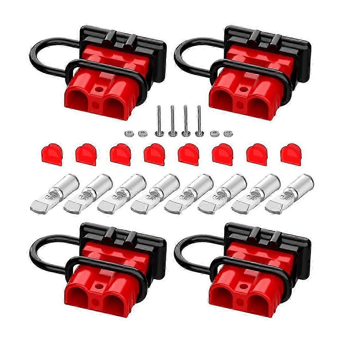 <p>Versatile Compatibility: This battery quick connect kit accommodates 6, 8, 10, and 12 AWG cables, with a maximum voltage of 600V and a 50A capacity.</p> <p>Complete Set: With this 50A quick connect\/disconnect kit, you'll receive 4 housings, 4 dust covers, 8 terminals, 8 sealing rubbers, 4 screws, and 4 nuts.</p> <p>High-Quality Materials: The quick connect battery connector is made of PC flame retardant material with a rubber dust plug and utilizes silver-plated plastic.</p> <p>Easy Installation: Simply insert the wire into the terminal pin and then solder or crimp it. Next, insert the terminal pin into the connector housing, lock it in place, and with the dust cover.</p> <p>Wide Applications: These quick connect wire connectors are commonly used in towing winch quick connect systems for trucks, ATVs, and RVs, as well as in elevators, , boats, and trailers.</p> <p>Note: Slight differences in the product does not affect the use</p> <p>Colour:Photo Color</p> <p>Material:Plastic</p> <p>Package Contents:</p> <p>1 set x Anderson Connector</p> <p>Only the above package content, other products are not included.</p> <p>Note: Light reflection and different displays may cause the color of the item in the picture a little different from the real thing. The measurement allowed error is +\/- 1-3cm.</p>