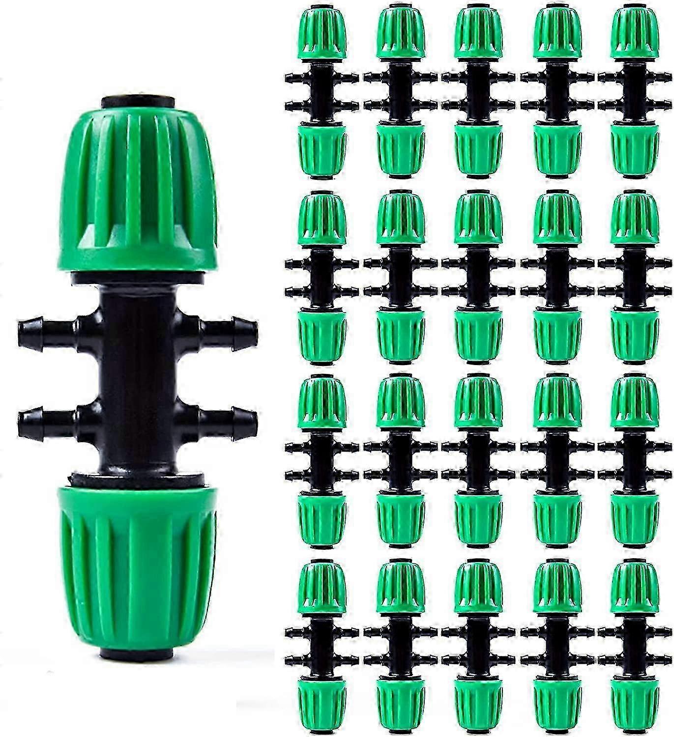 6-Way Drip Irrigation Tee Connectors for 1/2" & 1/4" Tubing - Set of 20 Green Fittings