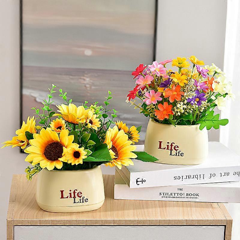 Artificial flower arrangement sunflower flower arrangement small potted plastic bouquet living room decoration dining table green plant ornaments