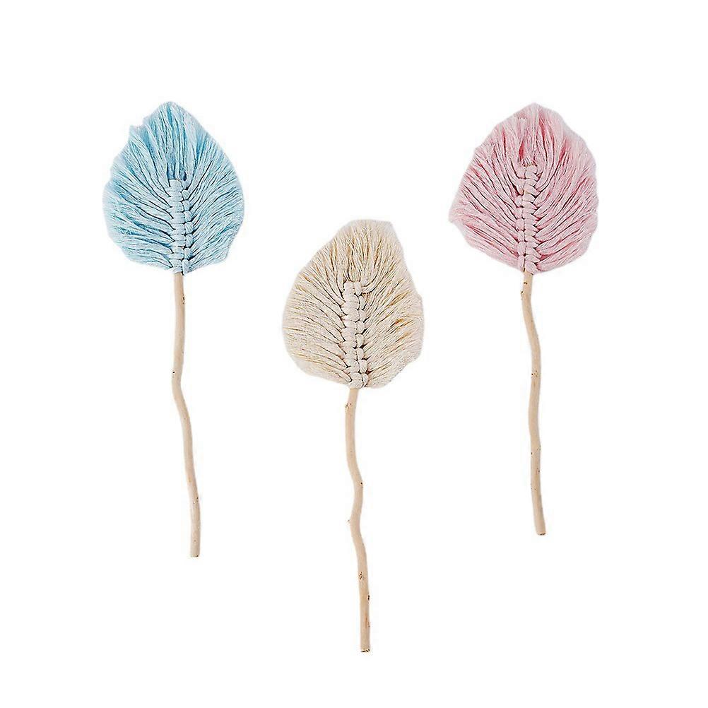 Cotton Rope Leaf Arrangement 3Pcs for Dining Room Decor Assorted Color Wood and Cotton Material for Photo Prop
