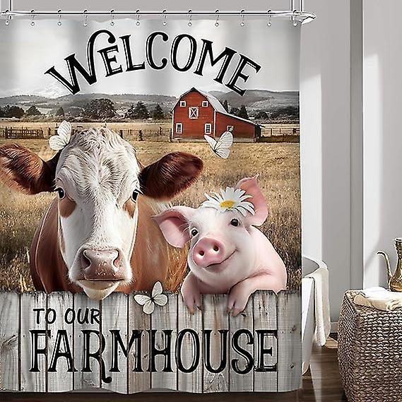 Farmhouse Cow Pig Shower Curtains Sets For Bathroom Accessories Polyester With 12 Hooks