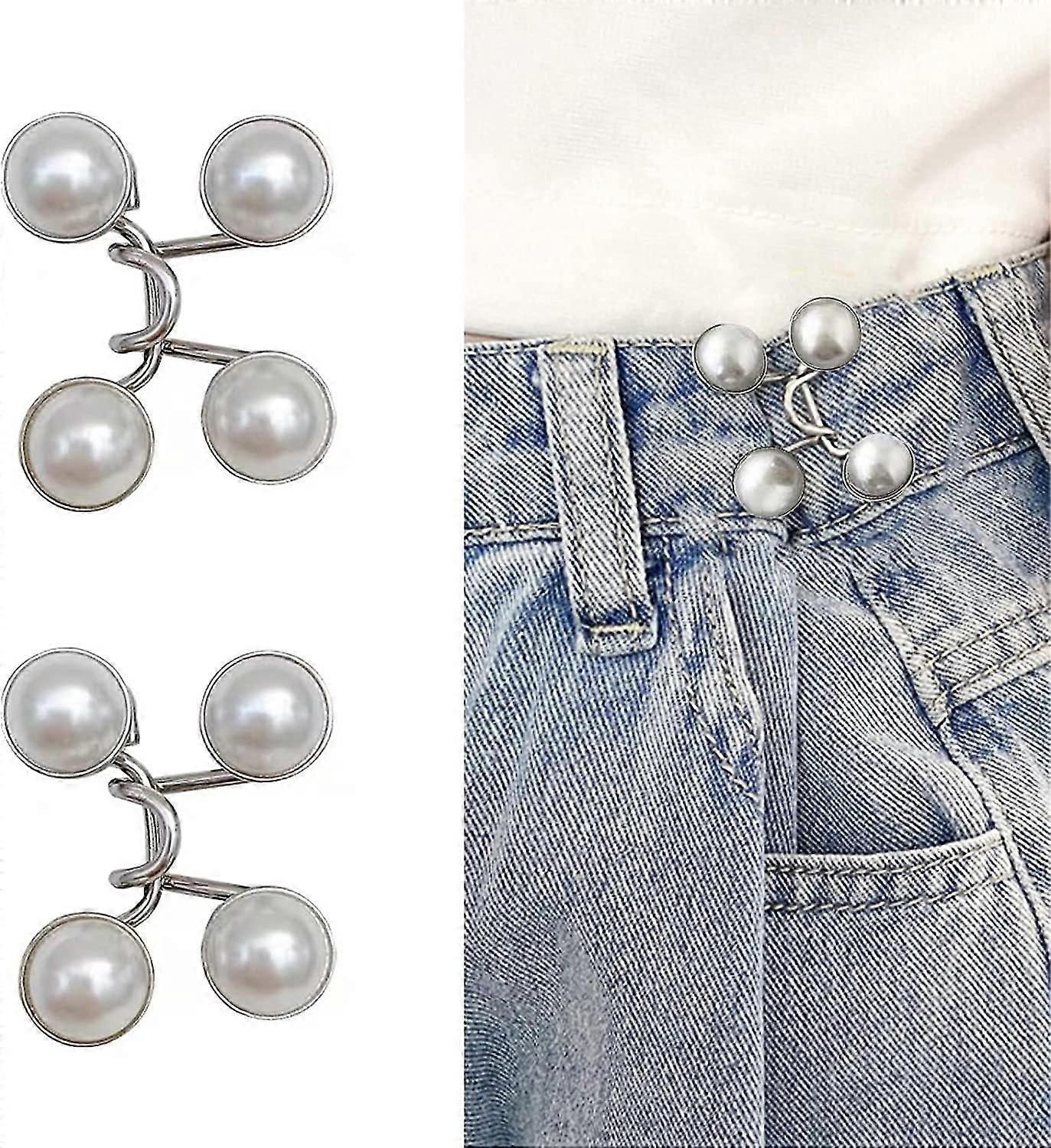 Sets Pant Waist Tightener Instant Jean Buttons For Loose Jeans Pants Clips For Waist Detachable Jean Buttons Pins No Sewing Waistband Tightener (white