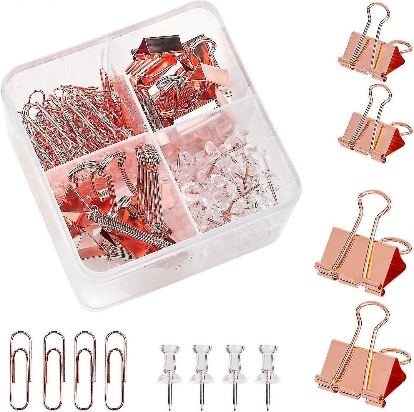 Set Of Paper Clips Push Pins Binder Clips,non-skid Map Tacks Thumbtacks Clips Kits With Container 171 Pcs Rose Gold Office, School, Home Supplies Set