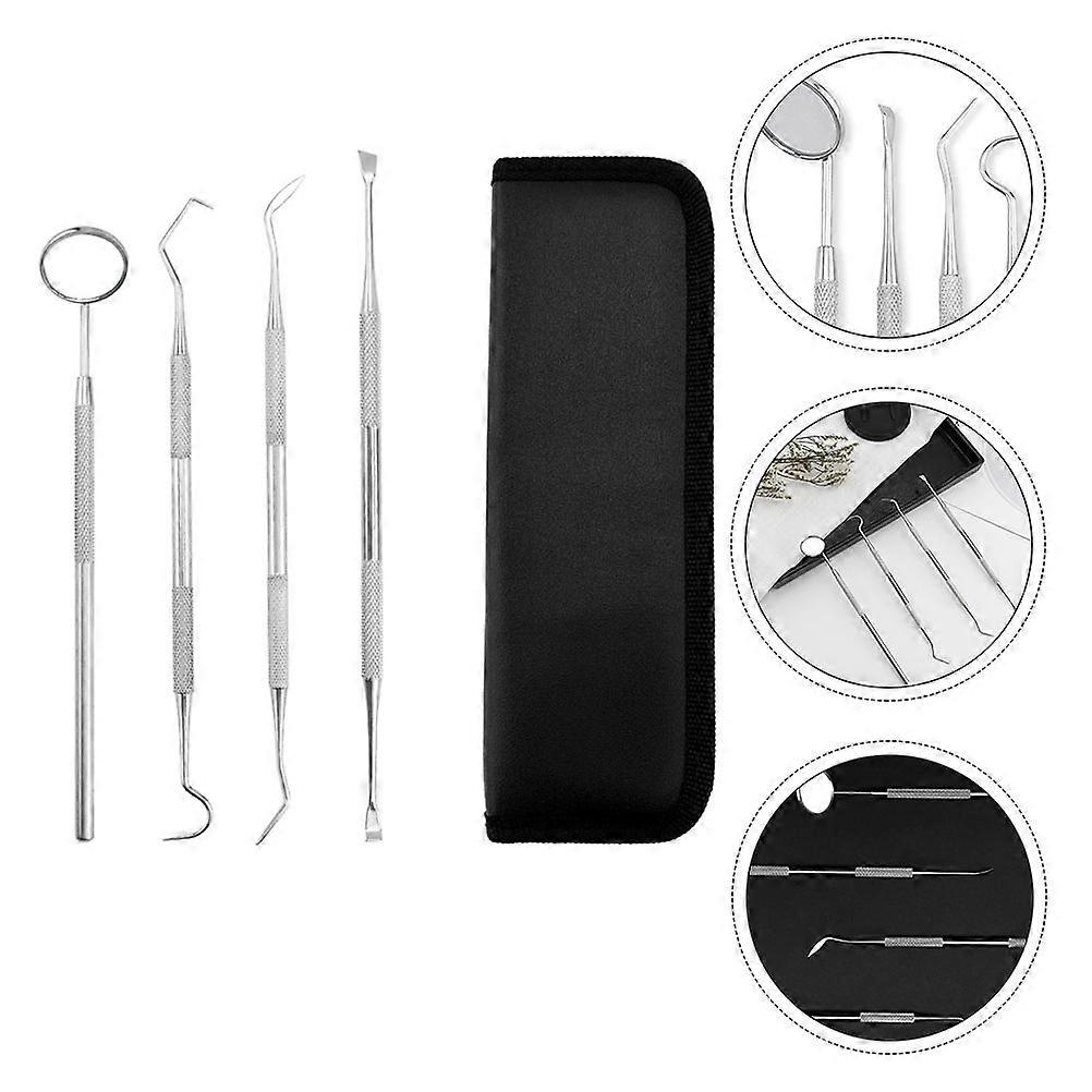Debris Cleaning Teeth Care Tools Oral Mirror Probe Assorted Color Traveling Use Stainless Steel Material 4Pcs