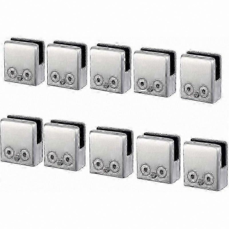 10-Pack 304 Stainless Steel Glass Clamps for 6-10mm Glass, Adjustable Flat Bracket for Staircase Handrail, Polished Finish