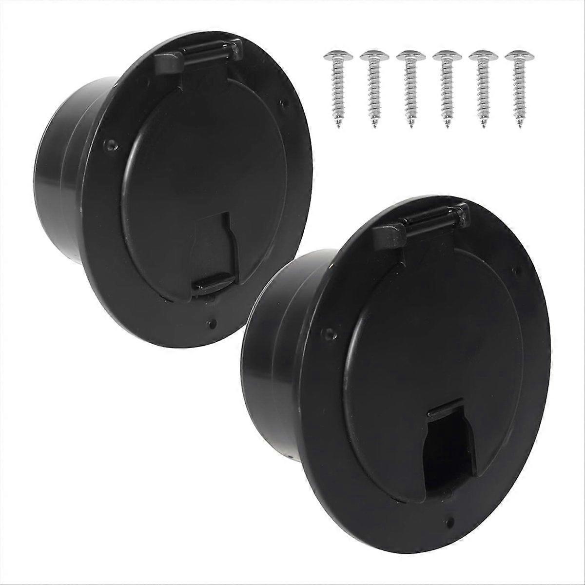 2-Pack, Black RV Hatch Covers Round Electric Cable Hatch with Screws