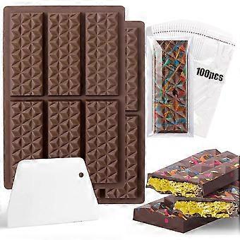 Pack of 2 Silicone Chocolate Moulds, Deep Chocolate Bar Moulds Non-Stick Coating Chocolate Mould, Ideal for Chocolate with Pistachios