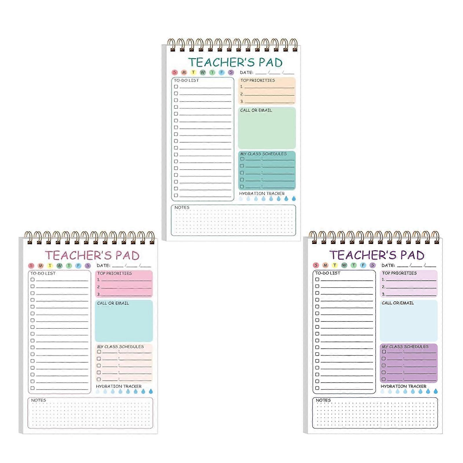 Pack Of 3 Teacher Notepads 50Sheets Undated Daily Planner Checklist Writing Pad For Classroom Use And Task Management Multicolor