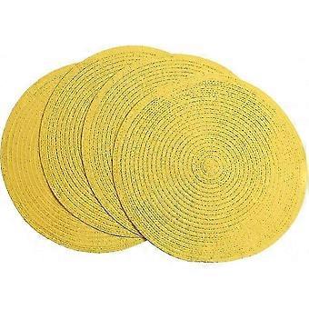 Συσκευασία 4 στρογγυλών υφαντών τραπεζοψάθων πλενόμενη κουζίνα κίτρινο VUX