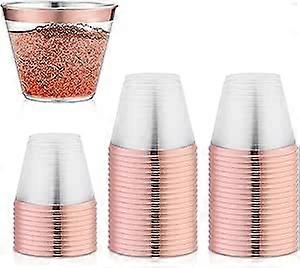 Pack of 50 Plastic Champagne Flutes, 255 ml, Reusable Drinking Cups, Plastic Cups with Gold Rim, for Party, Wedding, Picnic, Birthday, Beach, Camping