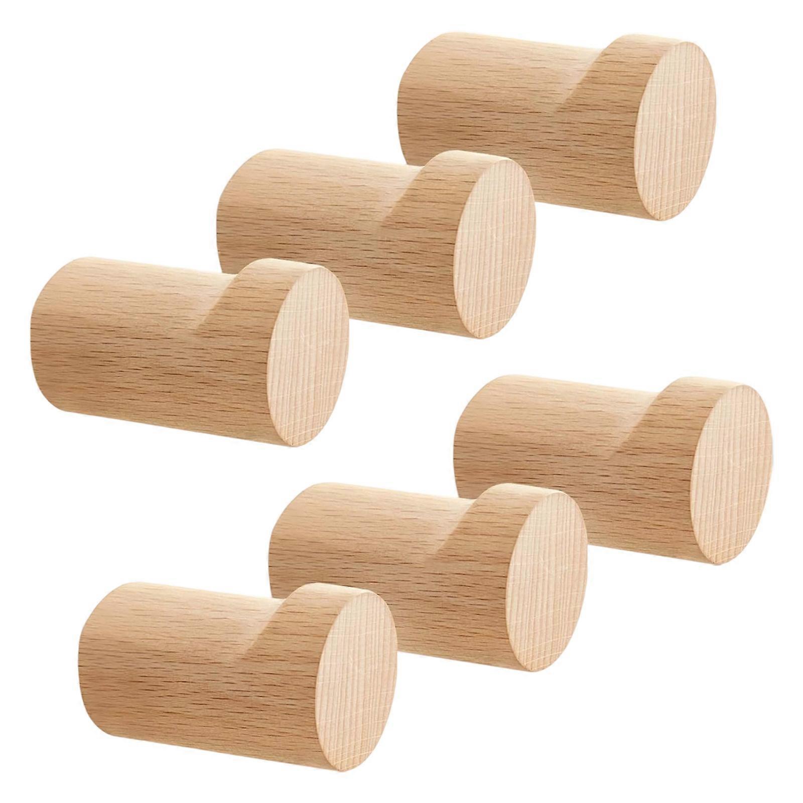 Pack Of 6 Solid Beechwood Wall Hook Handcraft Natural Wood Hook With Large Capacity For Home Storage Light Yellow