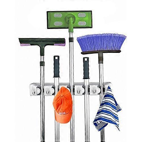 Mop And Broom Holder, 5 Positions With 6 Hooks, Garage Storage Can Hold Up To 11 Tools