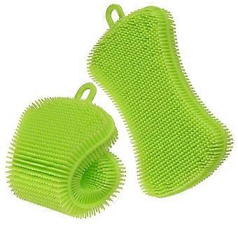 Silicone Dish Sponge, 2pack Multi-purpose Silicone Sponge Food Grade Kitchen Antibacterial Washing Brush Scrubber, Magic Household Cleaning Sponges Fo