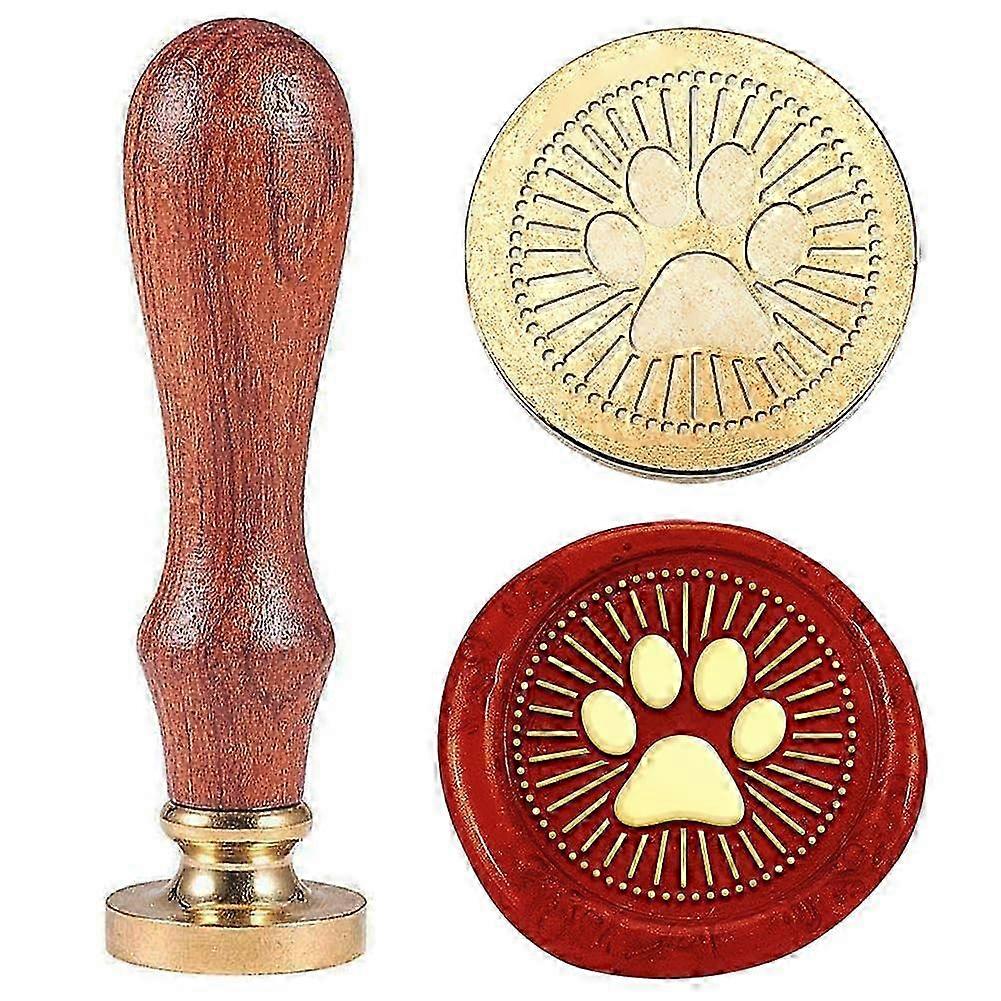 2025 1pc Paw Print Wax Sealing Stamp Vintage Dog Paw Wax Seal Stamp Gift for Christmas 25mm Removable Brass Head Stamp with Wooden Handle for Envelope