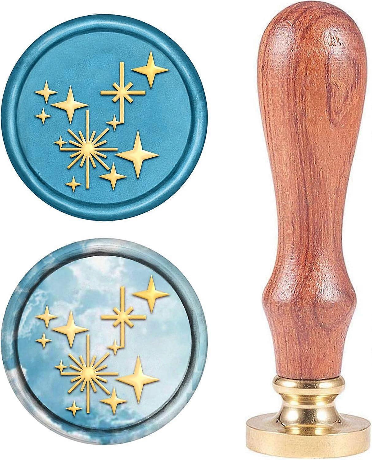 Star Wax Seal Stamp Four-Pointed Star Vintage Sealing Wax Stamp Stars Retro 25mm Removable Brass Head with Wooden Handle for Wedding Invitations Envel