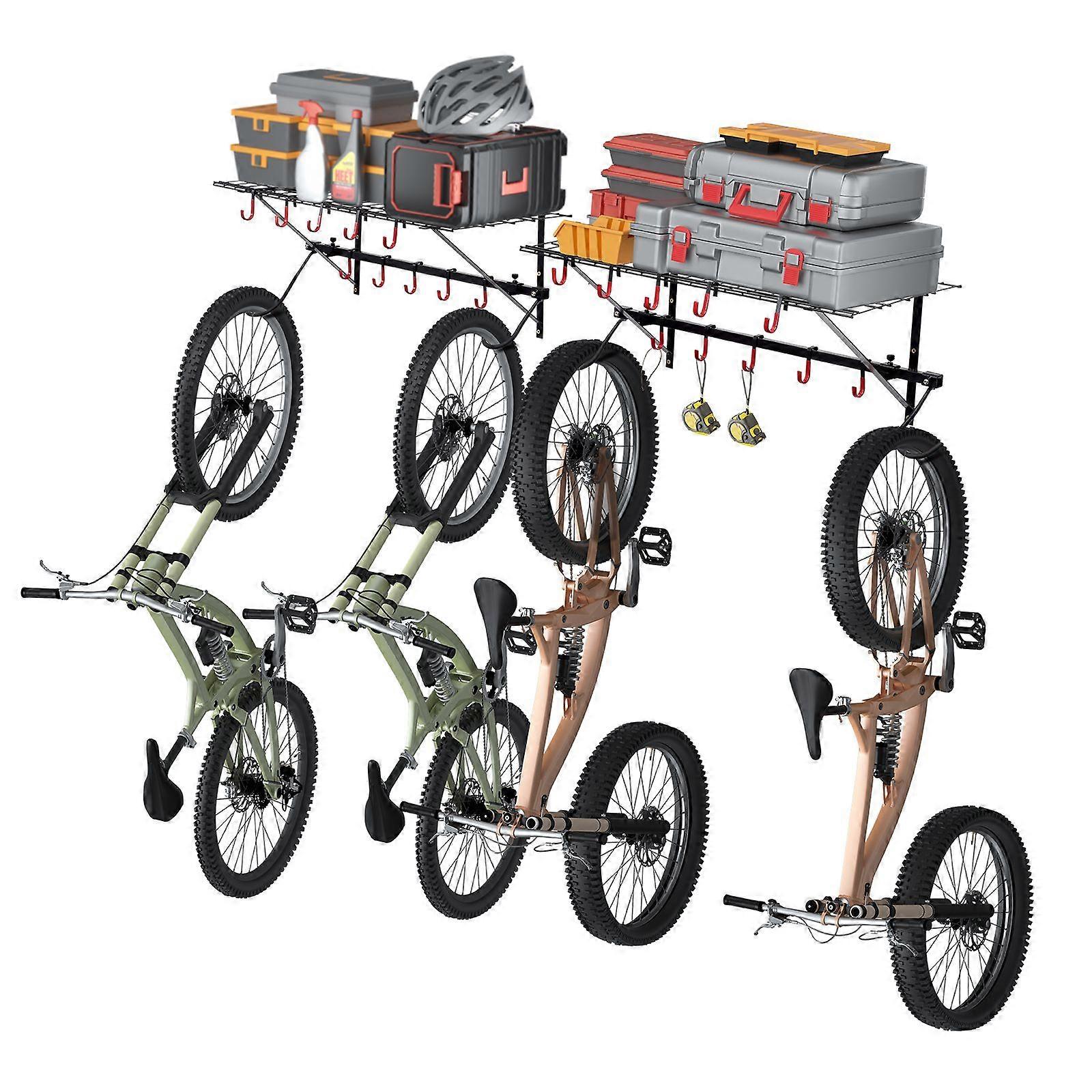 Bike Storage Rack, 4 Bike Racks, Wall Mount Bike Storage Hanger with 2 Shelves, Adjustable Holder, Holds Up to 500 lbs, 63-inch