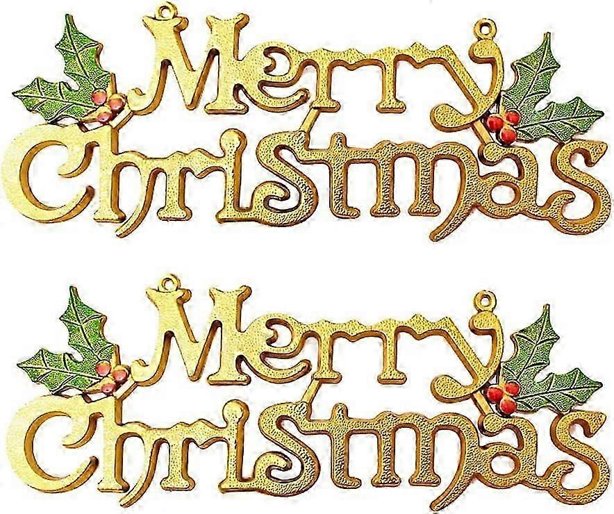 Designs Merry Christmas Signs, Decorative Glittery Hanging Signs for Xmas, Gold Merry Christmas Tree Wreath Decorations Accessories Hanging Ornaments