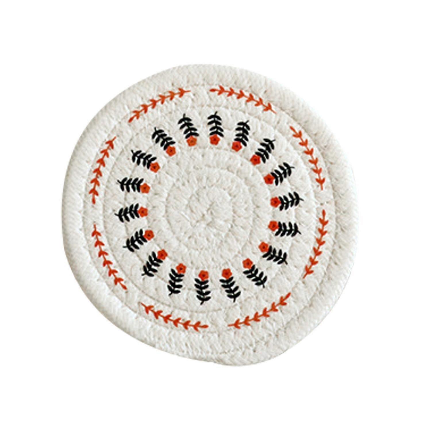 Flower Pattern Woven Cup Coaster Round Cotton Rope Tasty Sweet Drink Tea Coaster Table Decor-ZZY
