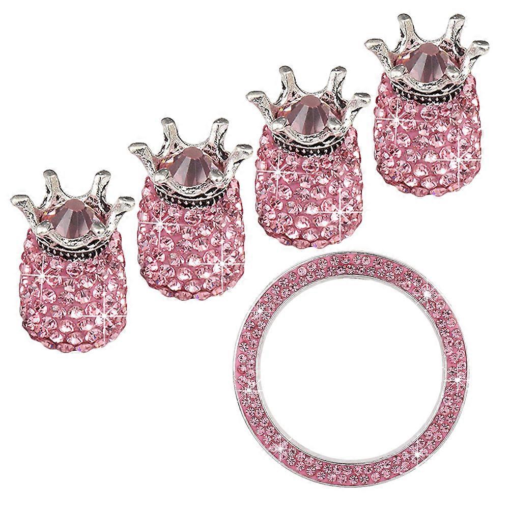 Shape Rhinestone Car Tire Valve Caps Set of 5 Pieces Pink Alloy for Car