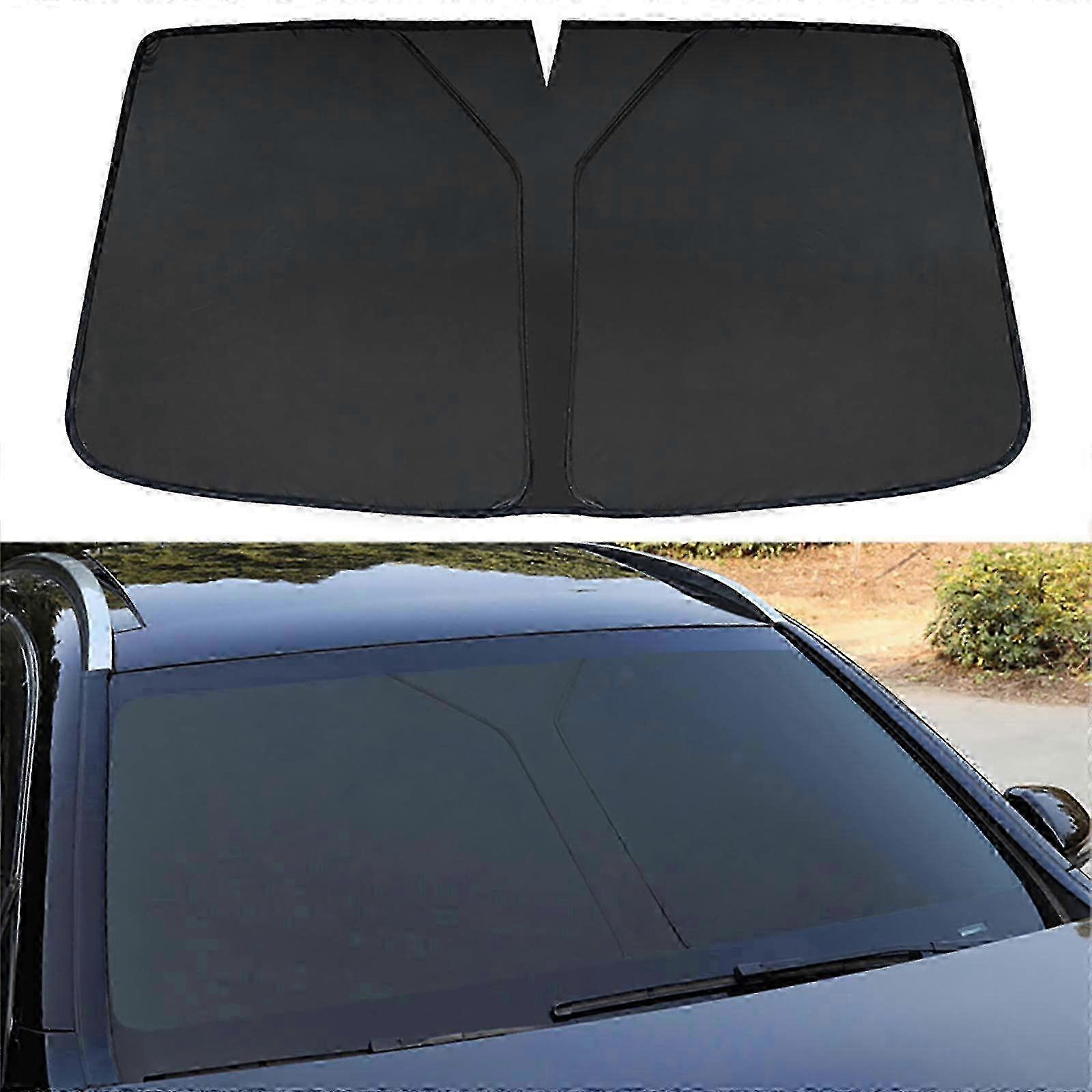 1. MaterialWindshield sun shade is made of high density polyester shade fabric and reflective aluminum film, which can effectively block up to 80 percent of total solar energy, protect your skin from sunburn, and keep your car cool. 2. Well FittedSun shade for car windshield is designed to fit the original windshield size of cars, providing a good fit. 3. Strong Thermal InsulationThis car windshield sun shade has excellent thermal insulation. It's an economical and convenient way to prevent sunlight from penetrating your car and help keep it cool in hot and sunny weather, lowering the temperature inside the car. 4. Effective ProtectionOur car front windshield shade will effectively block sunlight and heat, keeping your car cool and comfortable. It protects your seats and dashboard from discoloration due to prolonged sunlight exposure, even on hot days. Note: Due to the light and screen setting difference, the item's color may be slightly different from the pictures. Please allow slight dimension difference due to different manual measurement.