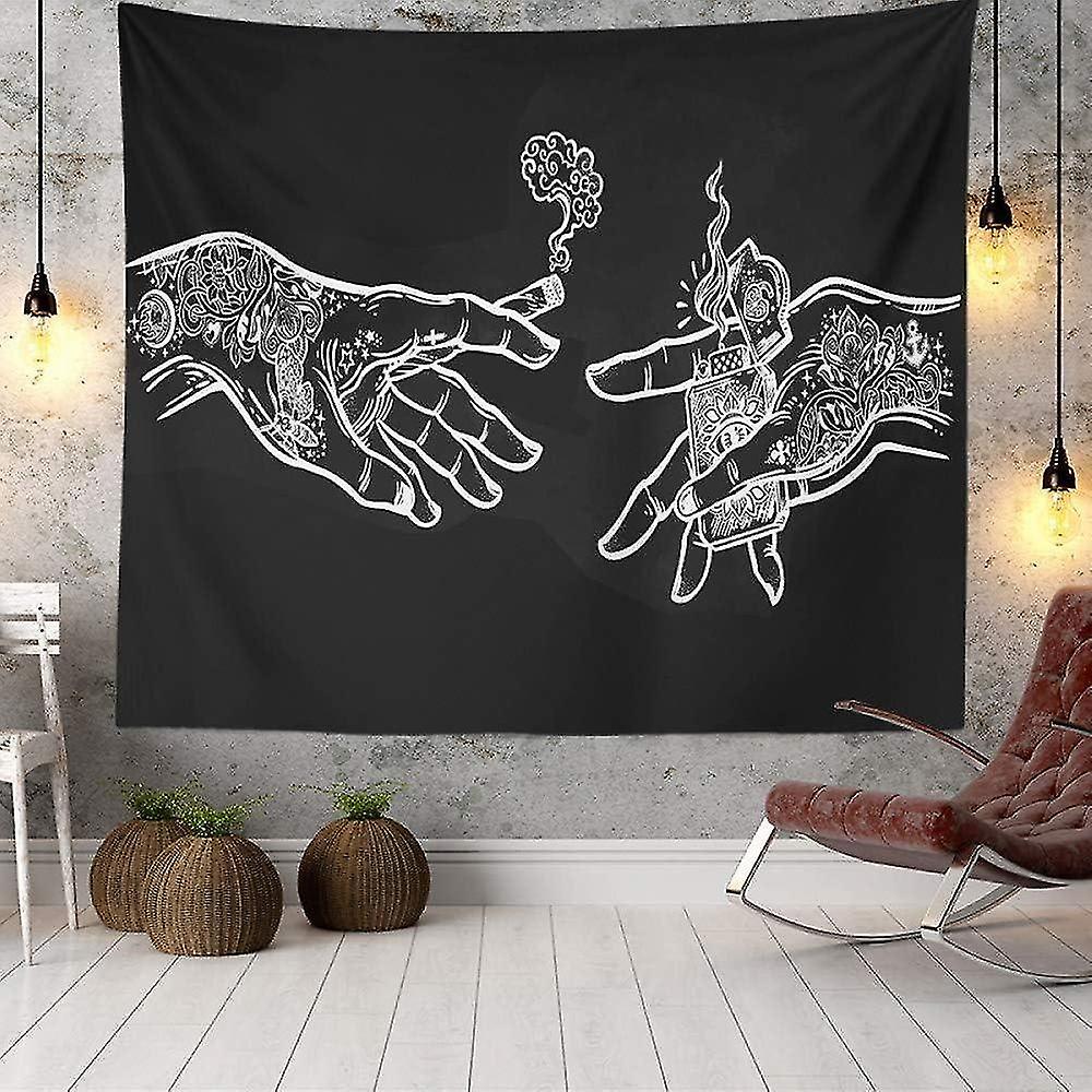 Hands Wall Tapestry (150×130cm)White and Black Floral, Funny Trippy Hippie Boho Novelty Tapestry Wal