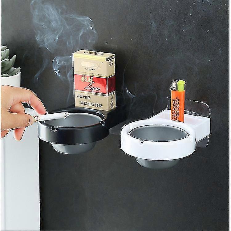 Ashtray, A Good Helper For Smokers. Suitable For Bathroom Wall-mounted Non-porous Ashtray With Ashtray Rack 2pcs Black/white