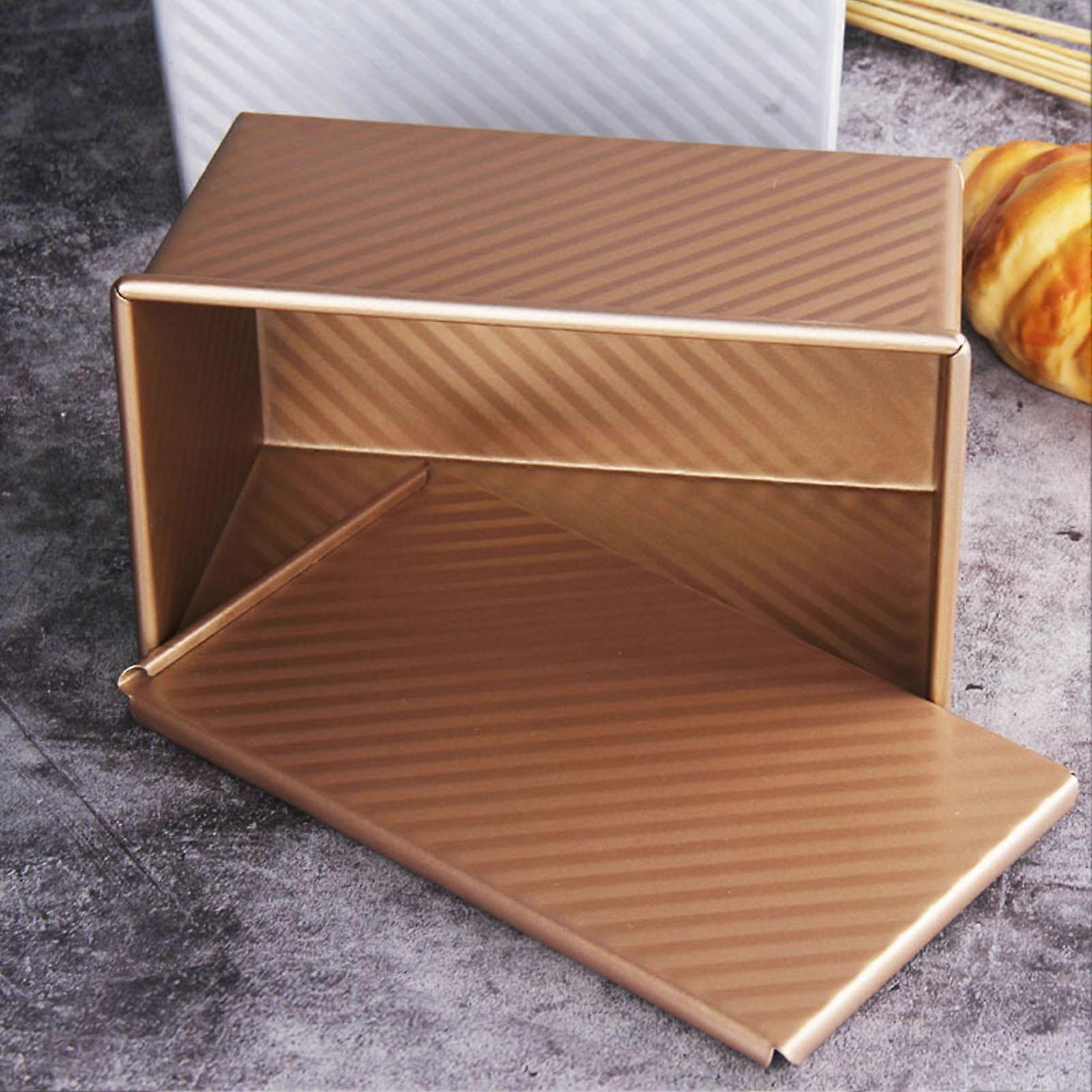 Bakeware Loaf Pan with Cover Nonstick Quick Release Coating Carbon Steel Ripple Rectangle Toast Box Bread Pan Gold